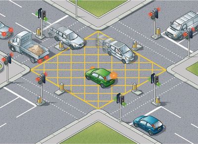 Be careful when queuing inside the box though as you might not have time to clear the junction before the traffic lights changes to red therefore if there is already a vehicle waiting inside the box to turn right stop before stop line until that car clears junction and enter the box if your light is still green.